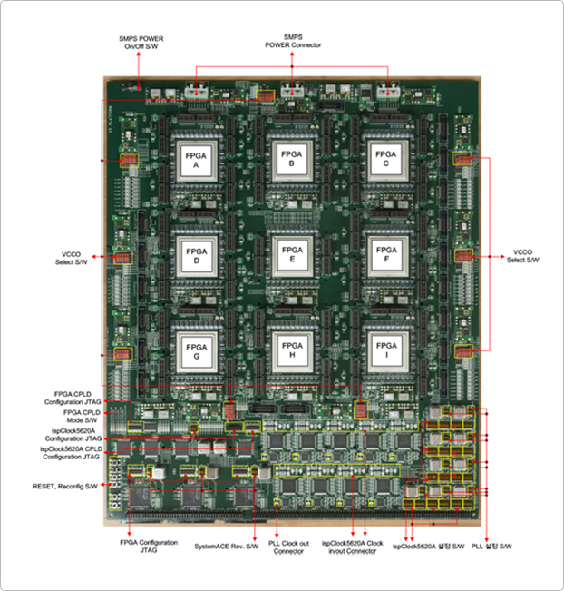 It is designed for all ASIC prototyping and H/W & S/W co-verification. MFP-LX760-Q is designed for all ASIC prototyping needs, including H/W & S/W co-development and end user evaluations. MFP-LX760-Q is carefully designed for maximum performance, with respect to signal integrity, speed and other critical issues. Signals to connectors and between FPGAs are length matched, thus minimizing skew and allowing very high speed signaling.