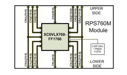 RPS-760MÀº XilinxÀÇ ÃֽŠVirtex6 XC6VLX760À» žÀçÇÑ ¸ðµâ·Î º£À̽ºº¸µå¿¡ ÀåÂøµÇ¾î µ¿ÀÛÇϸç, 4°³ÀÇ Upper Connector¸¦ ÀÌ¿ëÇÏ¿©, ¸ðµâÀ» ½ÇÀåÇϰųª 4°³ÀÇ Lower Connector¸¦ ÀÌ¿ëÇÏ¿© º£À̽ºº¸µå ¶Ç´Â FPGA¸ðµâ À§¿¡ StackingÀÌ °¡´É Flexible Modular FPGA º¸µåÀÔ´Ï´Ù.